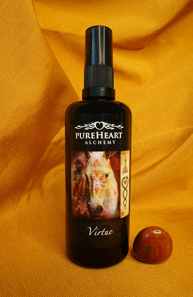 1 x Virtue Myst (special 2026 edition). With it's horse totem and deep scent, we have reMastered the aroma for more warmth and soft strength, while adding in 396 Hz Solfeggio frequency for liberation and freedom. This powerful tone dissolves fear and guilt, liberating your spirit from old patterns. building confidence, enhancing security, freeing emotions and grounding in strength.